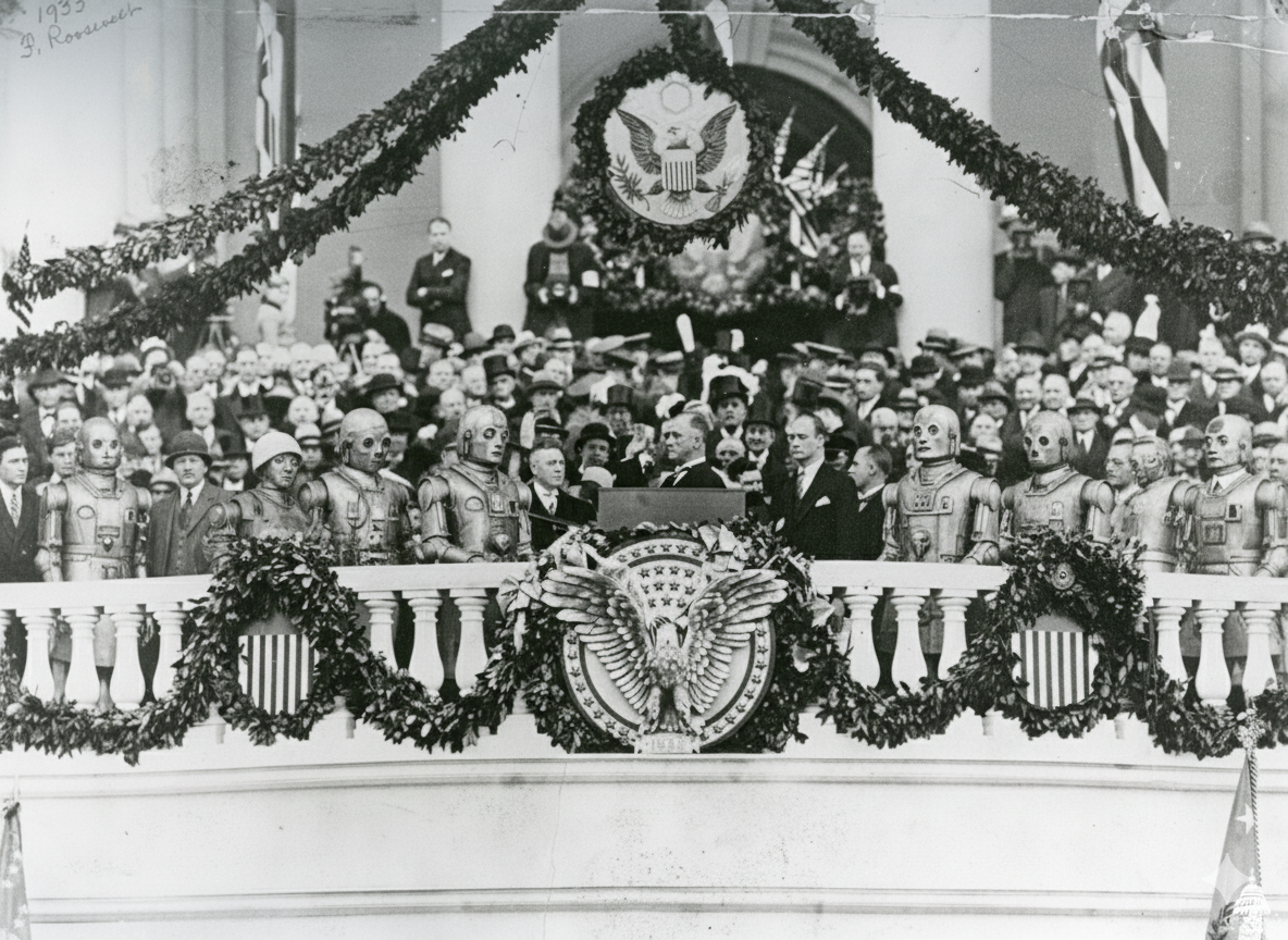 “Franklin D. Roosevelt’s First Inauguration, Washington, D.C., March 4, 1933.” Photograph. National Archives and Records Administration, College Park, MD. Accessed October 13, 2025. https://www.archives.gov/. (Edited by the author)